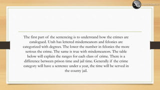 Felonies more serious crimes are punishable by incarceration in state prison. Examples of Class B crimes includes prostitution or gambling. In the state of Utah there is a 90 percent surcharge imposed for criminal convictions which mean 90 percent in addition to 2500.