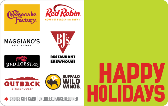 The Happy Holidays Dining Card is redeemed for egift cards from some of the most popular restaurants serving a variety of cuisines. 700 am to 1100 pm. Treat this card like cash.